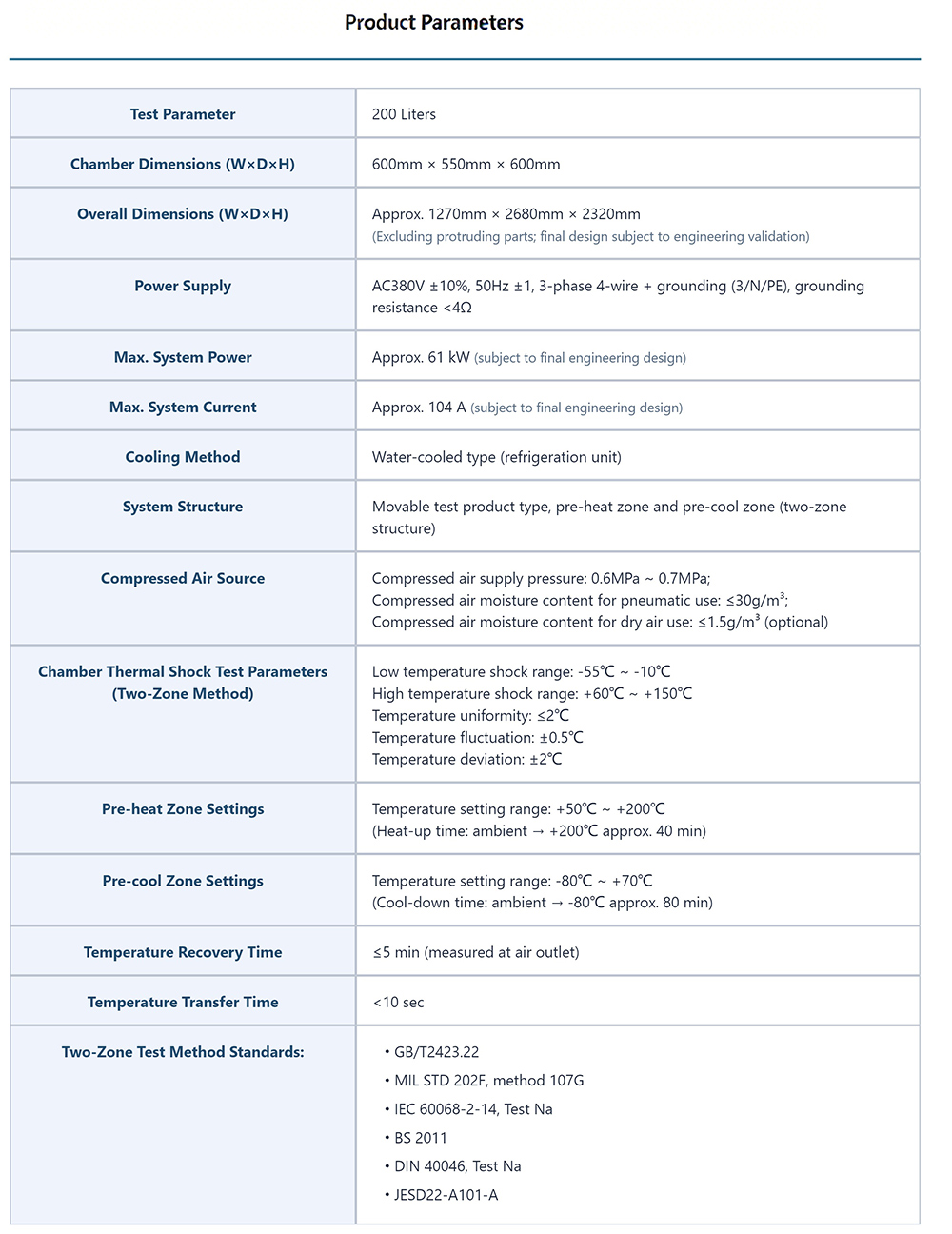 High and Low Temperature Two-zone Thermal Shock Test Chamber